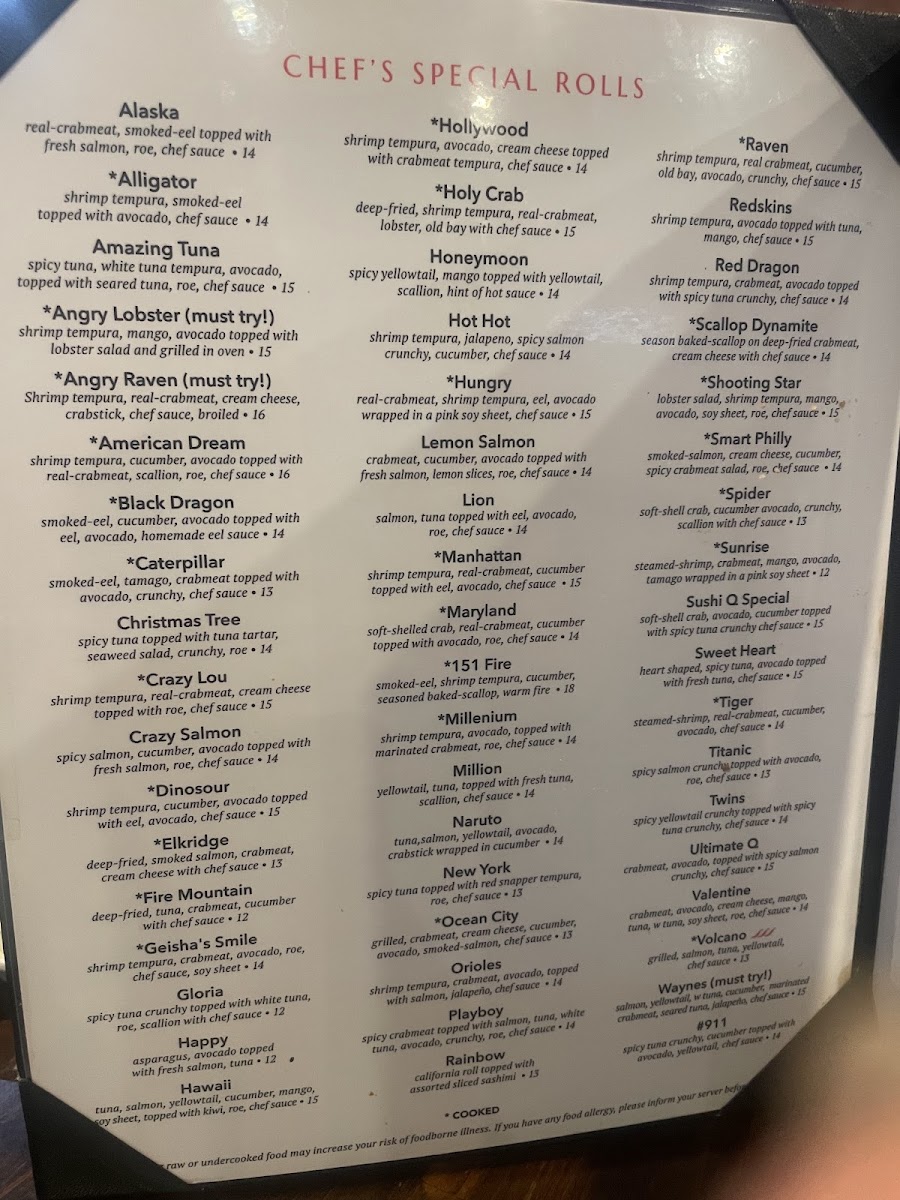 Sushi Q Elkridge Menu