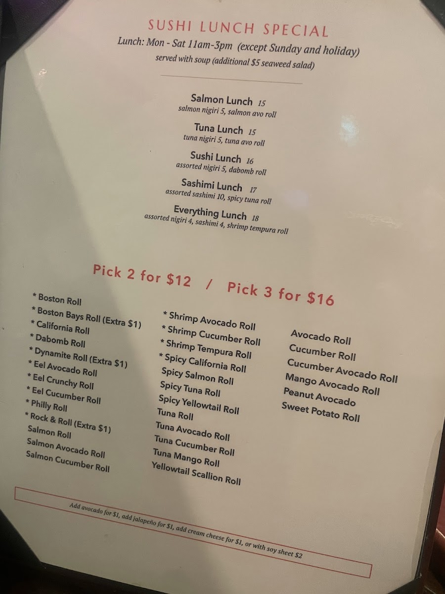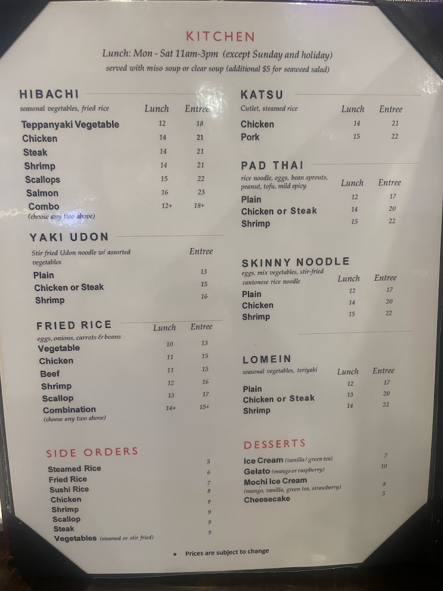 Accompanying these offerings, subtle details like complimentary cheesecake slices add a gentle note to the overall dining experience, reinforcing a sense of comfort and care. The menu’s mood aligns well with the friendly service and welcoming environment found inside, making it a place suited not just for sushi enthusiasts but also for those seeking a pleasant and straightforward Japanese meal.